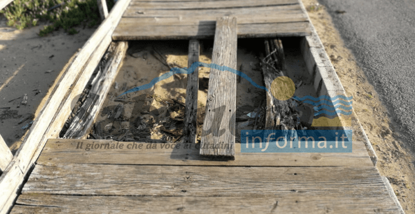 Rimanendo sul tema sicurezza, il problema sembra tuttavia essere molto più esteso. Buona parte delle passerelle per scendere in spiaggia, infatti, sono messe davvero male. Diverse segnalazioni sono arrivate ad esempio dall’accesso più vicino a Torre Paola, passerella 4. Dall’altro lato del lungomare la situazione non è delle migliori anche in zone molto frequentate come quella poco dopo l’incrocio con via Sant’Andrea, in prossimità della passerella 27.