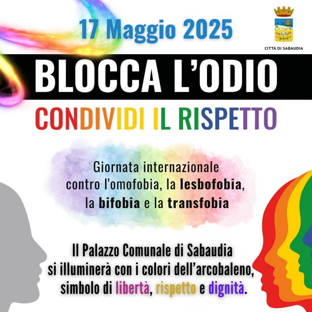 “No” all’omofobia, bifobia e transfobia. Il prossimo 17 maggio, in occasione della Giornata internazionale, il palazzo comunale di Sabaudia si illuminerà con i colori dell’arcobaleno. Non per inseguire il facile consenso, ma per ricordare che esiste ancora chi viene giudicato, isolato o deriso per il suo essere.