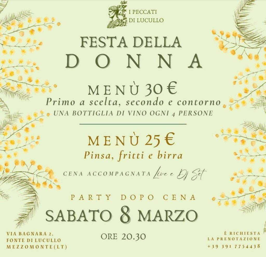 Ancora non hai deciso dove trascorrere la Festa della Donna? Ti aiutiamo noi, non cercare oltre. Prenota subito a I Peccati di Lucullo, in via Bagnara 2 a Sabaudia e preparati a una serata indimenticabile.