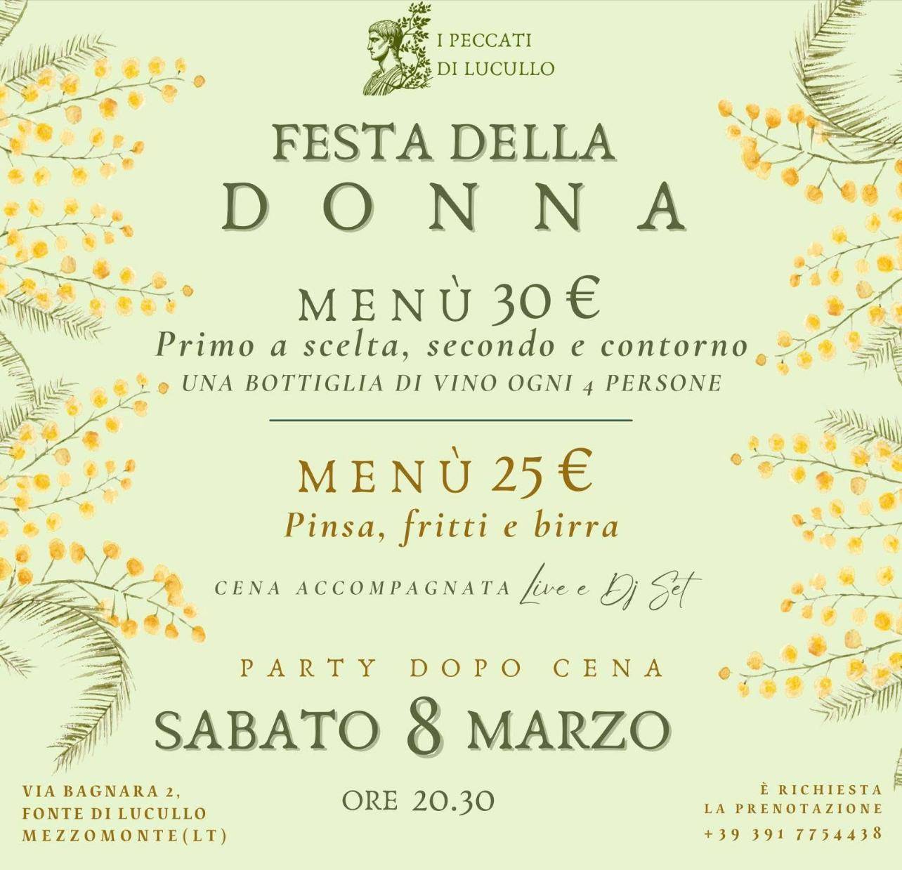 Ancora non hai deciso dove trascorrere la Festa della Donna? Ti aiutiamo noi, non cercare oltre. Prenota subito a I Peccati di Lucullo, in via Bagnara 2 a Sabaudia e preparati a una serata indimenticabile.