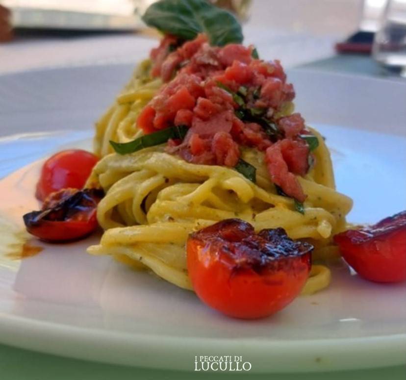 Il nuovo menù firmato dallo chef Alessio è una dichiarazione d’amore alla cucina italiana con tocchi di geniale creatività. Come il tagliolino arcobaleno, una meraviglia di crema di pistacchio, pomodorini confit e granella di pistacchio. Equilibrio perfetto tra delicatezza e “carattere”.
