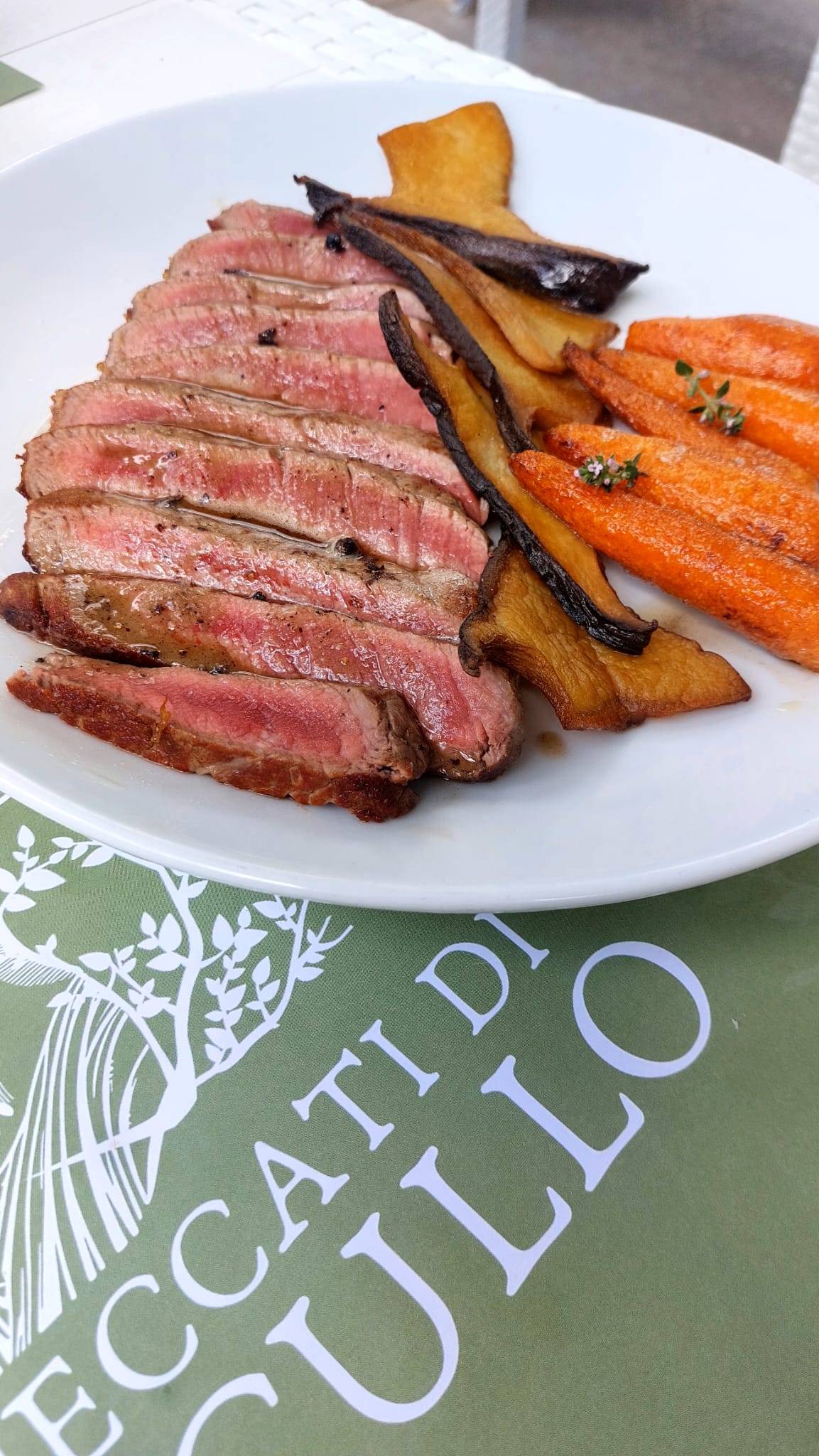 Succulenta la tagliata con funghi cardoncelli e carote, per chi ama la carne succosa accompagnata da profumi decisi. E poi, la regina della tradizione reinterpretata: la faraona in porchetta. Che bontà! Un tuffo nei sapori antichi resi attuali.