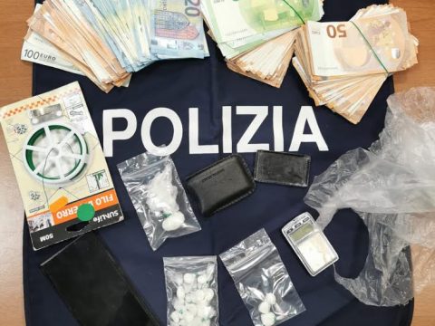 Droga: ventotto involucri contenenti 18 grammi di cocaina, oltre a denaro e tutto il necessarie per il confezionamento. Arrestato dalla…